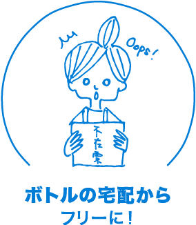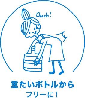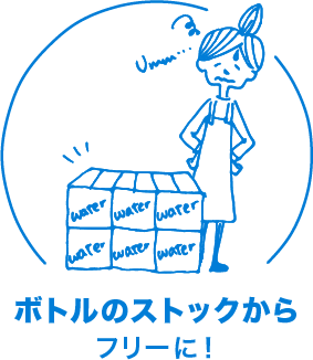 水道水を入れるだけなので、ボトルの発注・受取、保管場所の確保、重いボトルの交換、全て不要です!全てのストレスから解放されてすっきり!